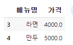 - 인덱스 이름이 3인 '라면' 데이터까지 나오게 된다