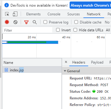 수집할 페이지를 연 후 개발자도구를 열어 network 탭의 headers를 확인한다