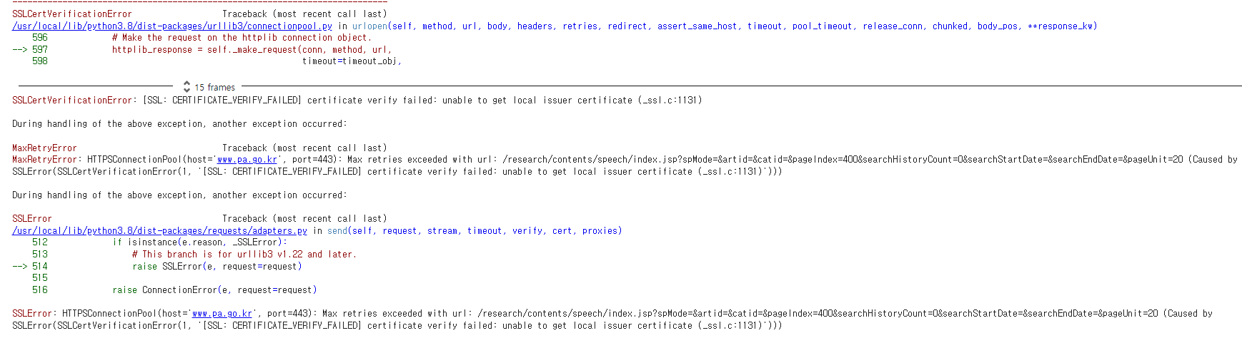 verufy = False 를 통해 SSL 인증서 확인 과정을 생략한다.