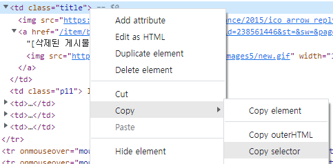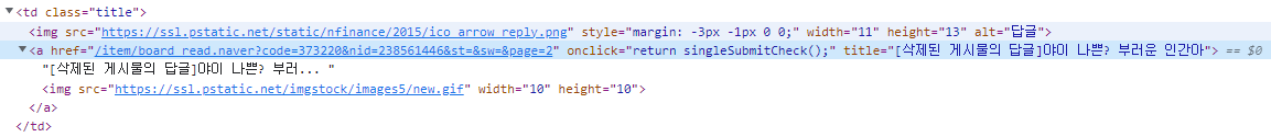 이 모든 정보를 가지고 있는 title 클래스를 copy select 해와서 제목, 답글, 글번호를 가져오자