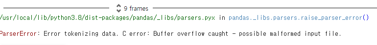 사실.. csv 로 저장하고 읽으려고 마지막 #파일 만들고 읽기 부분을 아래와 같이 작성하였는데, 아래와 같은 에러가 발생하였다.