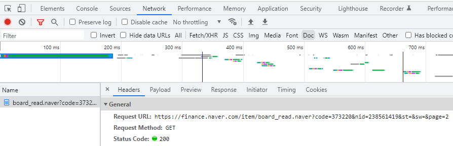 글 내용을 가져오기 위해서는 또한번의 requests 로 요청이 필요해 보인다.