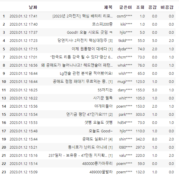 display(get_list(373220, 'LG에너지솔루션', '2023.01.12'))