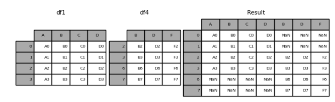 - default : axis = 0 , 인덱스 초기화 X / outer join
