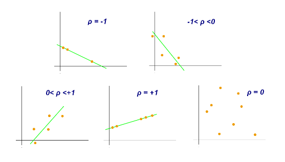 - r 값은 X 와 Y 가 완전히 동일하면 +1, 전혀 다르면 0, 반대방향으로 완전히 동일 하면 –1 을 가진다.
